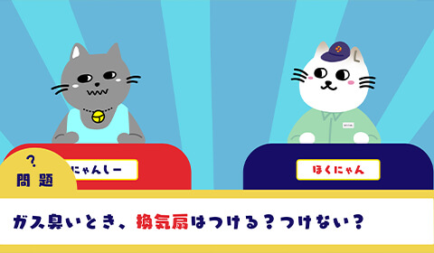 ほくエネのマスコットキャラクター「ほくにゃん」を展開して、ガスの周知活動を行っています。知っておいていただきたいガスの知識や知っておくと役立つ豆知識などを、ほくにゃんと愉快な仲間たちが皆さまにお知らせいたします。ほくにゃんと一緒に、安全にガスを使っていきましょう!
